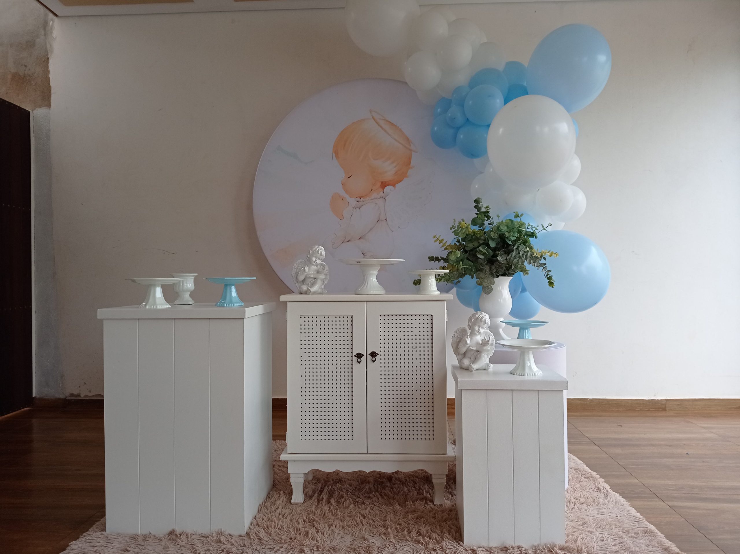 Sabemos que o batizado pede uma decoração sofisticada, delicada e com um toque de elegância. Trabalhamos com temas que vão do clássico ao moderno, sempre respeitando suas preferências e o estilo que você deseja para a celebração. Usamos cores suaves, elementos angelicais e detalhes que simbolizam a paz e a espiritualidade dessa data especial.