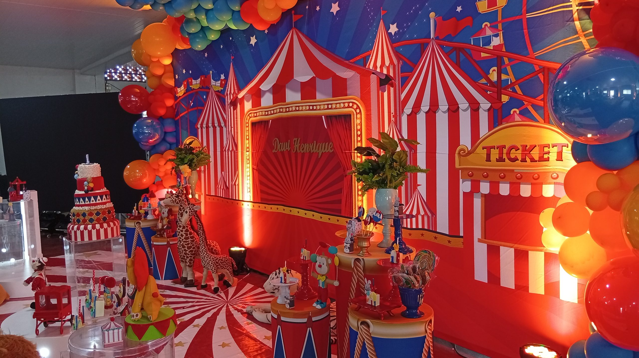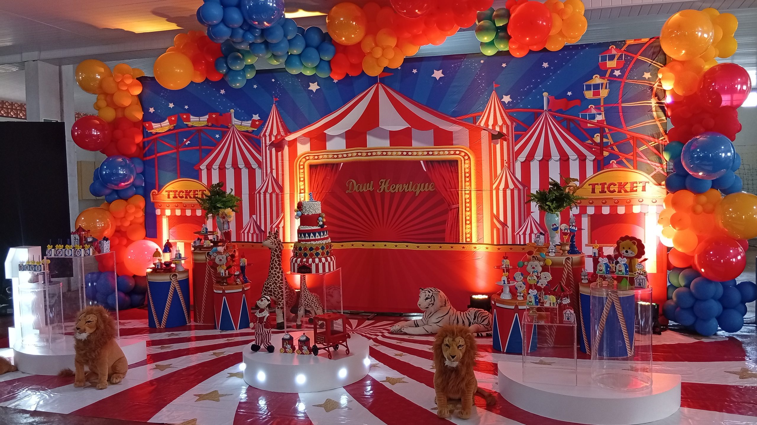 Com atenção à harmonia do tema e cuidado na disposição dos elementos, criamos uma decoração circo envolvente, pensada para encantar crianças e adultos. Cada detalhe foi planejado para valorizar o ambiente da festa e destacar os pontos principais com beleza e criatividade.