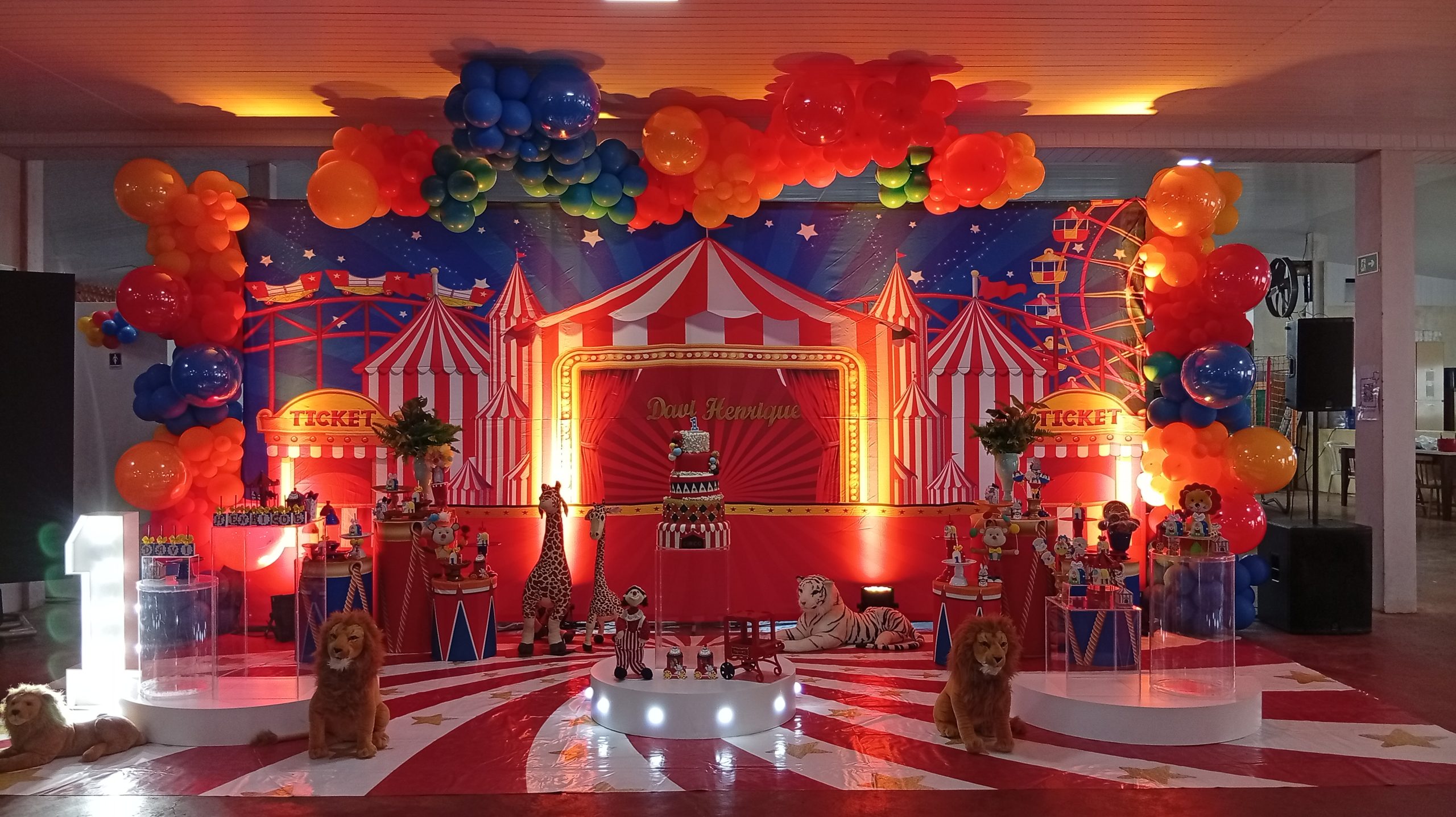 Essa decoração de festa na Sede Alvorada combinou diversão, elegância e a energia única que só o universo circense oferece. O uso de cores tradicionais do circo e elementos decorativos personalizados trouxe um toque especial à comemoração.