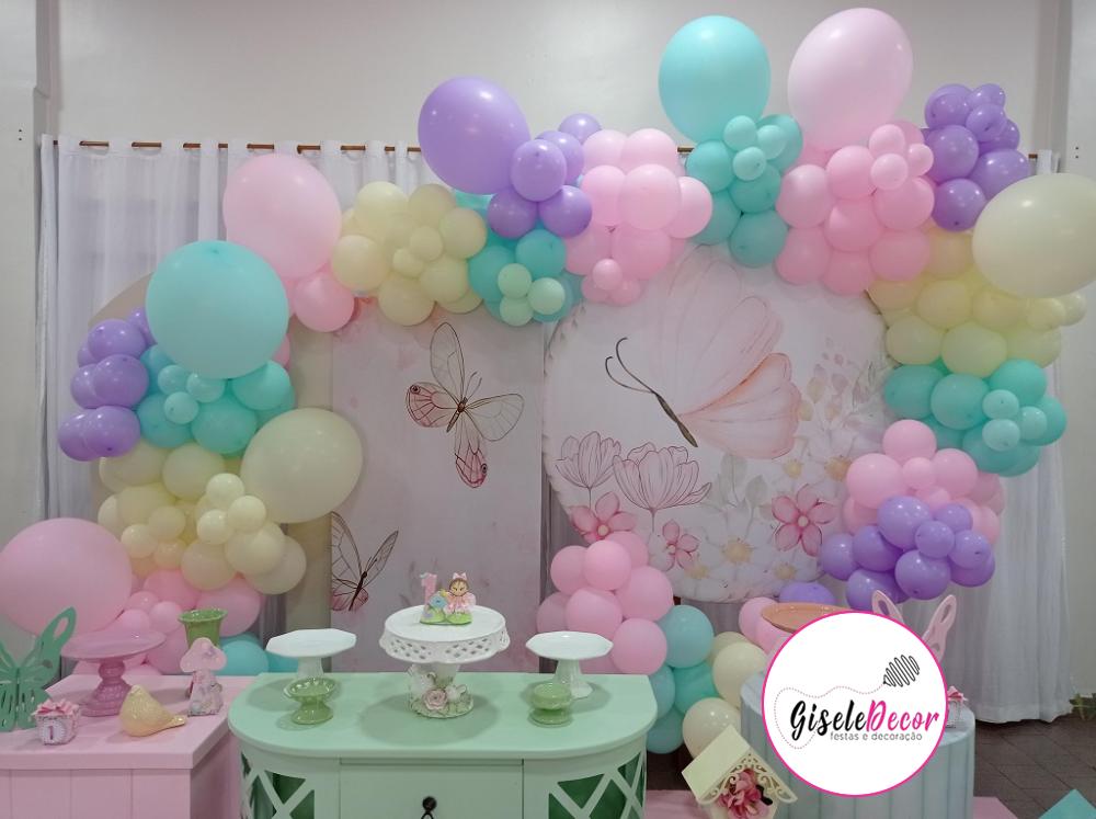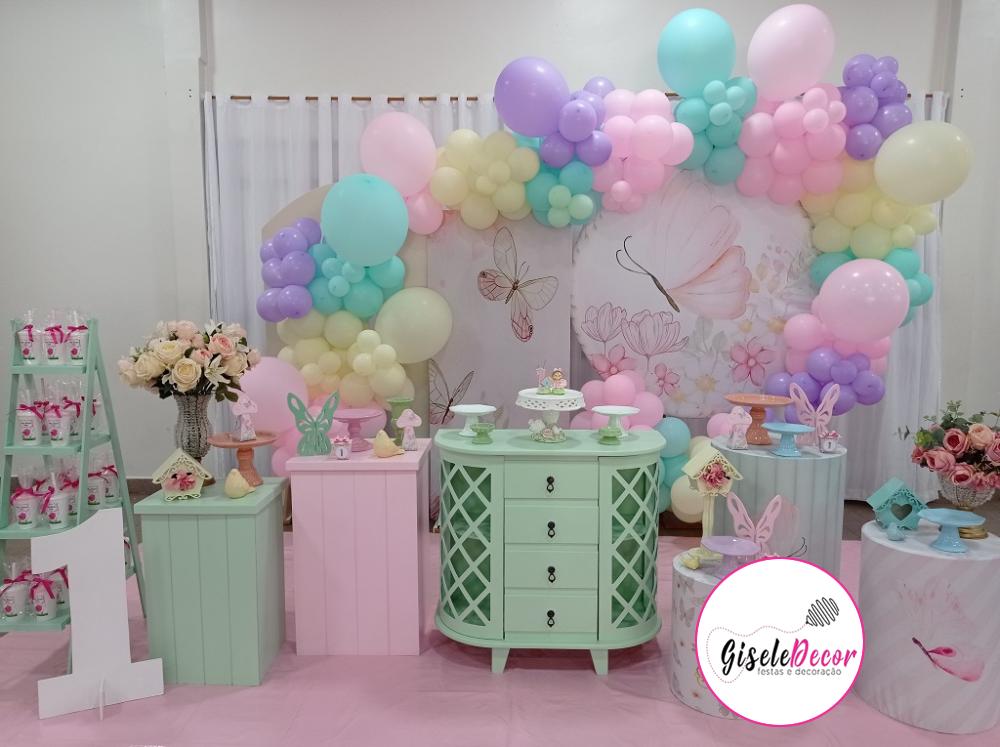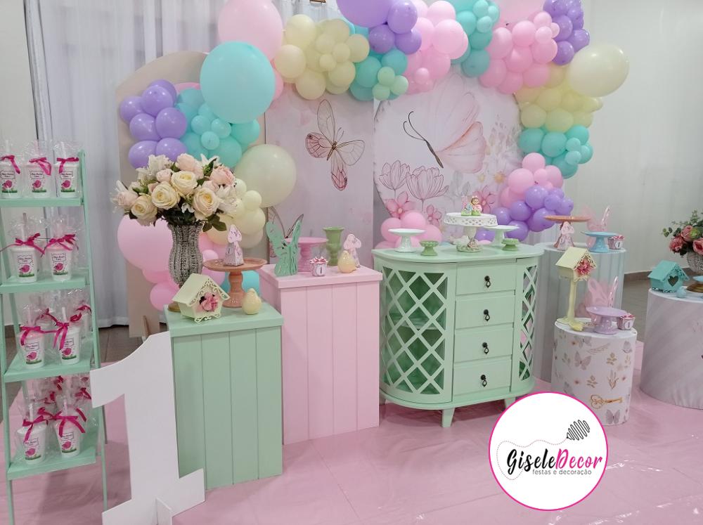 Tema alegre, colorido com tons suaves, uma linda decoração para celebrar o primeiro aninho!