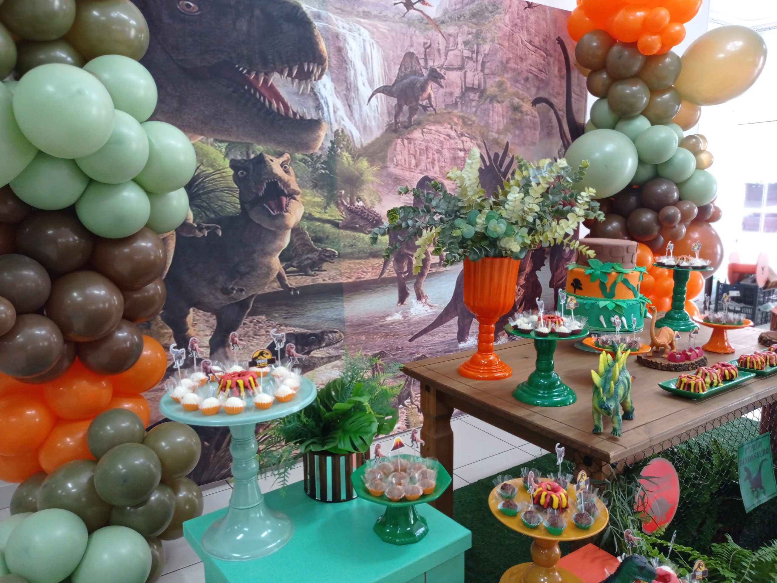 Mais uma festa repleta de aventuras jurássicas entregue com amor em Toledo-PR! A equipe GiseleDecor preparou uma decoração temática com o tema Dinossauros, especialmente para a mesa principal da festa infantil realizada no tradicional Roda Gigante Buffet.